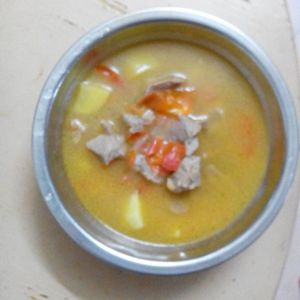 炒五分后,加入适量的水,火烧开后用小火慢炖十分钟,加入盐、味精即可出锅。