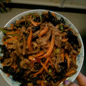 备好泡好的木耳,切好萝卜丝,辣椒丝