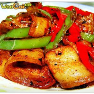 2匙调和油入锅,加青尖椒红尖椒,翻炒1min,再加已炒至7成熟的五花肉、姜丝,继续翻炒。其间,放老抽1匙、蚝油1匙。待肉全熟,放盐和味精起锅入盘。