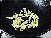 炒锅烧热加油至5成热,分别下蒜头、姜片、香茅炒香;