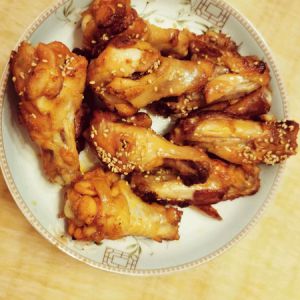 鸡翅漂洗干净血水,表面划几刀,放入电饭煲,加入老姜,料酒,水和奥尔良烤翅调料抓拌均匀。按下煮饭键