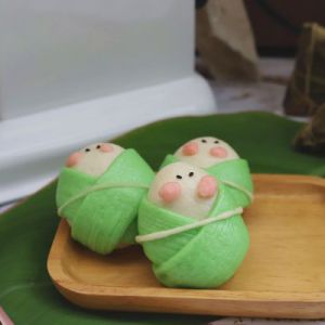 将粽子馒头胚常温醒发至原来的1.5倍大,然后送入蒸笼,冷水开始蒸,水开后上锅蒸8分钟即可。