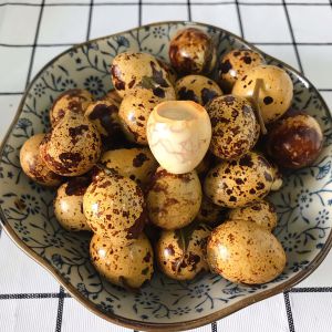 倒入3勺老抽和适量的盐以及1把茶叶,放入鹌鹑蛋。