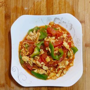 翻炒一会儿加入青椒,加入青椒主要是为了搭配颜色好看,不喜欢的可以不加,继续翻炒一会儿,放入生抽和盐调味儿,出锅