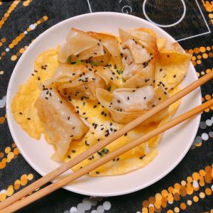 喜欢吃蛋黄馅儿的任何东西,大家都是煎饺子,但是我最爱煎吉祥馄饨。