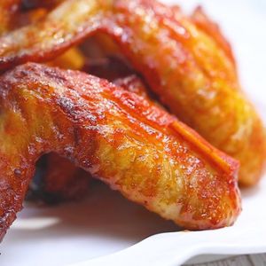 3. 将腌好的鸡翅放入微波炉高火烤25分钟。取出装盘即可。