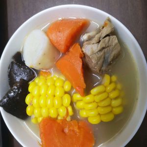 所有东西准备好后,放入砂锅中,小火炖一个半小时,最后放入一勺盐,汤就做好啦