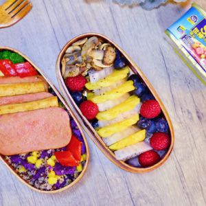 藜麦、紫薯和玉米粒拌匀,放在便当中