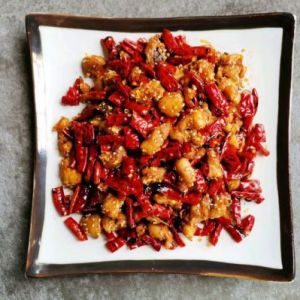 下炸好的鸡丁。翻拌均匀。因为前期鸡肉加过盐,后期加了豆瓣酱,可以不用调味了。