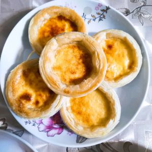 蛋挞液倒入蛋挞皮中,7~8分满即可,然后放入微波炉或烤箱中,叮20分钟左右