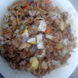 放入半勺生抽半勺老抽放半勺糖点点油拌匀