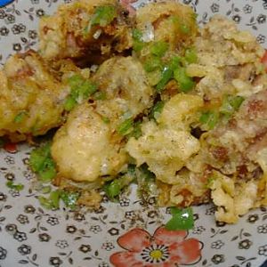 打一个鸡蛋,加上面粉和生粉,清水,搅成糊。