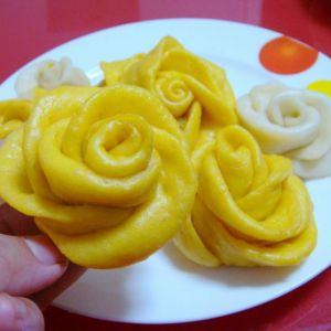 做好的玫瑰花醒二十分钟,冷水下蒸锅蒸15分钟左右,具体看玫瑰花大小。蒸好关火焖15分钟即可。