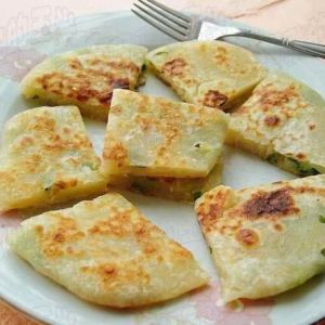 平底锅中加入少许油,用中火将饼烙至两面金黄色便可