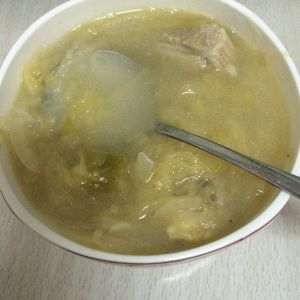 最后放入盐和鸡精,放盐可以尝一下,酸菜也有味道才好