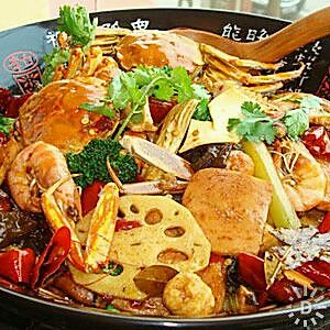 将锅烧热放油 放入半袋(依个人口味)麻辣香锅调料再放入姜蒜爆香 然后加入羊肉鱼丸等肉类