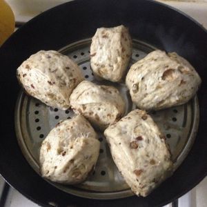 蒸笼上刷点油不易粘,每个隔开远一点,蒸的时候会变大!放上去大火蒸就好了!