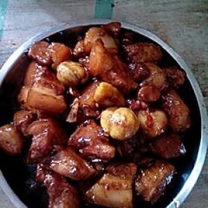 锅烧热,加入少许油,放入姜片蒜片,煸出香味,放入晾干的五花肉,翻炒一分钟,放入生抽老抽,再加入清水盖过肉就好,上盖中火煮五十分钟即可。