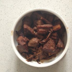 肉稍微炒下放入喜欢的辅食加生抽盐糖继续翻炒到7分熟,然后加水盖上盖子中火焖一小时,期间缺水可以加点