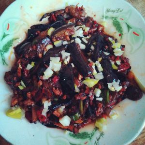 起锅炸茄子,不要炸的太软,盐腌茄子是为了不吸更多的油,炒好肉末,留少许油,爆香葱姜蒜花椒八角桂皮,豆瓣酱放一勺炒出红油,倒入炸好的茄子,翻炒致入味。