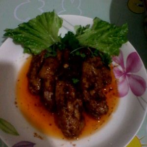 将鸡翅拿出来,摆好,再将锅里的汤料浇在鸡翅上,放好生菜即可完成啦。