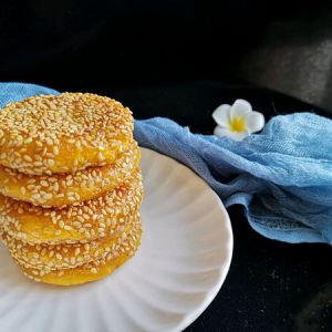 平底锅放少量油,放入南瓜饼,小火煎至两面金黄。