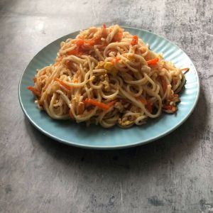 出锅,我不爱吃葱,爱吃葱放上点葱末,超级好吃香喷喷的炒面就出锅啦