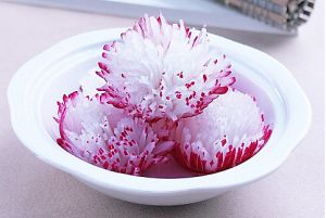 用蓑衣刀法切成片,放两根筷子在下面垫着,竖切薄片别切断。
