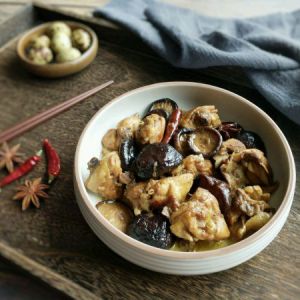 再将浸泡香菇的水倒入锅中,加2g盐,大火烧开后转小火炖30分钟左右