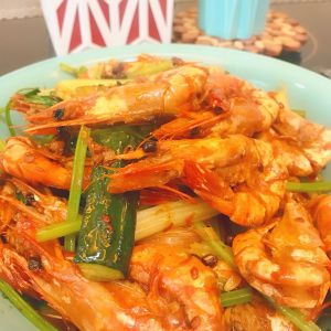 一斤大虾、开背去虾线、放入料酒、生抽、味极鲜、白胡椒、生粉腌制10-20分钟