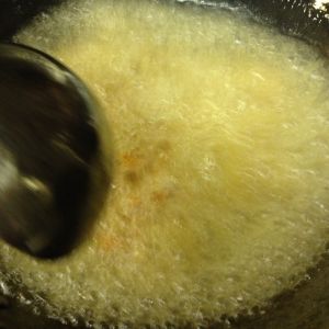 将开背洗净滴干水分的小虾 下热油炸至金黄