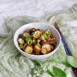 预热好的烤箱,180度烘烤25分钟左右,茄子烤熟即可。