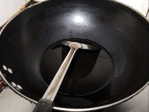 炒锅置火上烧热后,加2汤匙植物油,用花椒炝香后,将花椒捞出丢弃。