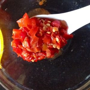 改小火将豆瓣酱,泡姜粒,剁椒炒香后,再下醪糟略为翻炒,