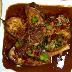 加1小碗半水大火烧开,再根据口味加1至2汤匙生抽调味后,下鱼段直勾兑好的汤汁中烧至入味,汤汁浓稠。中间尽量不要过多翻动鱼块,可适当晃动炒锅避免粘锅。最后洒入葱段关火起锅装盘即可。