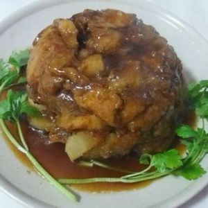 将土豆均匀的摆放在五花肉碗里,上蒸锅筝1.5-2小时。