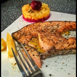 黑椒罗勒碎香柠烤三文鱼排菜谱做法