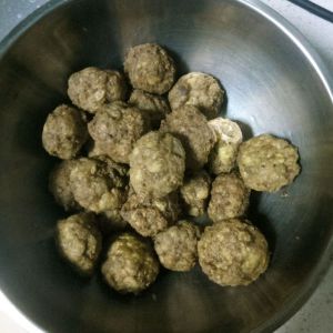 油烧开,转中小火,下丸子,慢慢的沿边缘放入锅中,小心烫伤