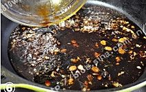 起油锅:取一口小锅注油7分满,点火加热,油温七、八成左右热度时,将香菇条逐条放入,炸至金黄焦脆时捞出控油备用,依此法分批将香菇条脆炸;蒜去皮切末;生姜去皮切末;调制芡汁料:取1小碗,加入鸡汁小半杯、鲍鱼汁1汤匙、豉汁1茶匙、头抽1茶匙、白砂糖2茶匙及适量盐调匀。炒锅烧热下油,将蒜末、姜末,中小火煸香,倒入调配好的芡汁料翻炒,将炸过的香菇条倒入翻炒至入味挂汁浓稠时盛出,撒上炒香芝麻上桌。