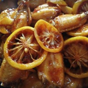 姜蒜加油爆香,下鸡翅,煎至微焦膨涨,再下柠檬片及上述调料,加盖中火炆,收汁。