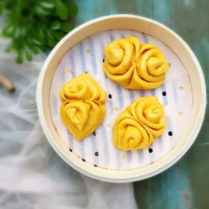 将造型好的南瓜馒头放至冷水蒸锅中进行醒发10分钟,然后中大火蒸约12分钟,关火后3分钟再掀盖即可