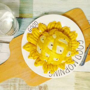 弄好后再点上黑芝麻装饰。一个向日葵馒头就好啦。