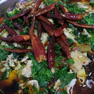 所有菜都用清水煮,然后用油炒一下,浇汁