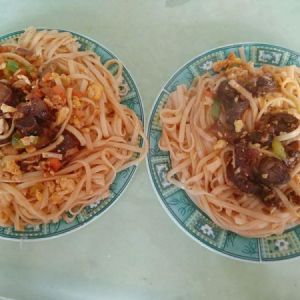 热锅放油,放入腊肠炒好,依次加入胡萝卜,蘑菇,鸡蛋,番茄酱,耗油,青椒,炒的差不多了放盐,味极鲜,把面条捞出来放入锅里拌均匀,【过程简单粗暴没来得及拍照】