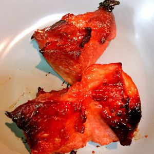 取出后入烤箱,190度20分钟,翻面刷酱汁190度继续20分钟,再翻面刷酱汁190度20分钟,出炉,晾凉切片