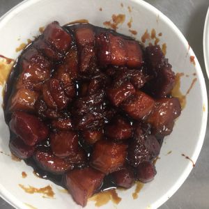 还可以加一点油,师傅说提亮。然后煮到猪肉变软,估计半小时左右,收汁出锅。