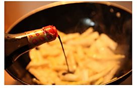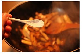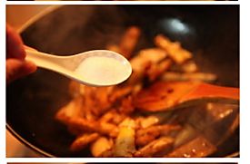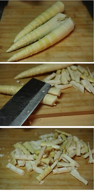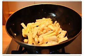 锅里多放些油烧热后,放入春笋大火翻炒;