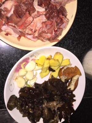 放白水淹过鸭肉再放木耳中火焖20分钟
