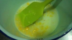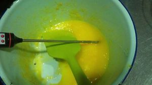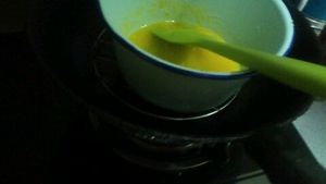 隔水,蒸的方式加热,不要碰到水,加热至80度,此时已浓稠