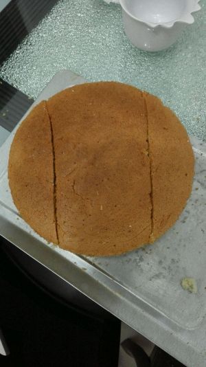 海绵蛋糕:鸡蛋,糖放入盘中,放在约45度热水上打发,直至体积变大,滴落的液体能划圈并不马上消失,取一部份蛋糕液与植物油搅拌均为,再倒回余下的蛋糕液搅拌均匀。烤箱140度预热后烤60分钟。时间温度按自家烤箱调节。喜欢细腻蛋糕的可改用戚风蛋糕。